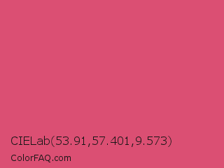 CIELab 53.91,57.401,9.573 Color is a normal red color and the nearest color is Cranberry #db5079. Hex code #db4f73 and RGB value is rgb(219,79,115). In RGB color space, this color is composed of 86% red, 31% green, 45% blue, In CMYK color space, this color is composed of 0% cyan, 64% magenta, 47% yellow , 14% black , In HSL color space, this color has a hue angle of 345° , 66% saturation and 58% lightness.