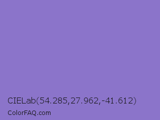 CIELab 54.285,27.962,-41.612 Color is a light indigo color and the nearest color is Ube #8878c3. Hex code #8b74ca and RGB value is rgb(139,116,202). In RGB color space, this color is composed of 55% red, 45% green, 79% blue, In CMYK color space, this color is composed of 31% cyan, 43% magenta, 0% yellow , 21% black , In HSL color space, this color has a hue angle of 256° , 45% saturation and 62% lightness.