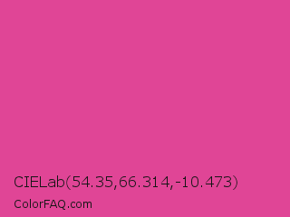 CIELab 54.35,66.314,-10.473 Color is a normal rose color and the nearest color is Pink Pantone #d74894. Hex code #e04596 and RGB value is rgb(224,69,150). In RGB color space, this color is composed of 88% red, 27% green, 59% blue, In CMYK color space, this color is composed of 0% cyan, 69% magenta, 33% yellow , 12% black , In HSL color space, this color has a hue angle of 329° , 71% saturation and 57% lightness.