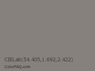 CIELab 54.405,1.692,2.422 Color is a normal orange color and the nearest color is Rocket Metallic #8a7f80. Hex code #87817e and RGB value is rgb(135,129,126). In RGB color space, this color is composed of 53% red, 51% green, 49% blue, In CMYK color space, this color is composed of 0% cyan, 4% magenta, 7% yellow , 47% black , In HSL color space, this color has a hue angle of 20° , 4% saturation and 51% lightness.