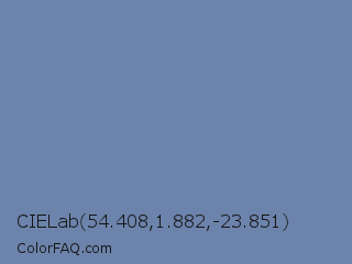 CIELab 54.408,1.882,-23.851 Color is a normal blue color and the nearest color is Bermuda Gray #6b8ba2. Hex code #6c83ab and RGB value is rgb(108,131,171). In RGB color space, this color is composed of 42% red, 51% green, 67% blue, In CMYK color space, this color is composed of 37% cyan, 23% magenta, 0% yellow , 33% black , In HSL color space, this color has a hue angle of 218° , 27% saturation and 55% lightness.