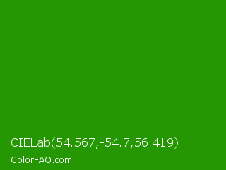 CIELab 54.567,-54.7,56.419 Color is a dark green color and the nearest color is Slimy Green #299617. Hex code #249702 and RGB value is rgb(36,151,2). In RGB color space, this color is composed of 14% red, 59% green, 1% blue, In CMYK color space, this color is composed of 76% cyan, 0% magenta, 99% yellow , 41% black , In HSL color space, this color has a hue angle of 106° , 97% saturation and 30% lightness.
