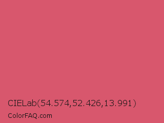CIELab 54.574,52.426,13.991 Color is a normal red color and the nearest color is Mandy #e25465. Hex code #d8576d and RGB value is rgb(216,87,109). In RGB color space, this color is composed of 85% red, 34% green, 43% blue, In CMYK color space, this color is composed of 0% cyan, 60% magenta, 50% yellow , 15% black , In HSL color space, this color has a hue angle of 350° , 62% saturation and 59% lightness.