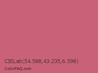 CIELab 54.588,43.235,6.598 Color is a normal red color and the nearest color is Cinnamon Satin #cd607e. Hex code #c96279 and RGB value is rgb(201,98,121). In RGB color space, this color is composed of 79% red, 38% green, 47% blue, In CMYK color space, this color is composed of 0% cyan, 51% magenta, 40% yellow , 21% black , In HSL color space, this color has a hue angle of 347° , 49% saturation and 59% lightness.