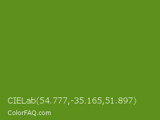CIELab 54.777,-35.165,51.897 Color is a normal green color and the nearest color is Vida Loca #549019. Hex code #5e911c and RGB value is rgb(94,145,28). In RGB color space, this color is composed of 37% red, 57% green, 11% blue, In CMYK color space, this color is composed of 35% cyan, 0% magenta, 81% yellow , 43% black , In HSL color space, this color has a hue angle of 86° , 68% saturation and 34% lightness.