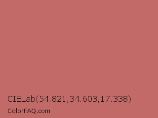 CIELab 54.821,34.603,17.338 Color is a normal red color and the nearest color is Contessa #c6726b. Hex code #c26a67 and RGB value is rgb(194,106,103). In RGB color space, this color is composed of 76% red, 42% green, 40% blue, In CMYK color space, this color is composed of 0% cyan, 45% magenta, 47% yellow , 24% black , In HSL color space, this color has a hue angle of 2° , 43% saturation and 58% lightness.