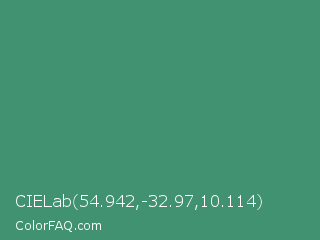 CIELab 54.942,-32.97,10.114 Color is a normal green color and the nearest color is Viridian #40826d. Hex code #419271 and RGB value is rgb(65,146,113). In RGB color space, this color is composed of 25% red, 57% green, 44% blue, In CMYK color space, this color is composed of 55% cyan, 0% magenta, 23% yellow , 43% black , In HSL color space, this color has a hue angle of 156° , 38% saturation and 41% lightness.