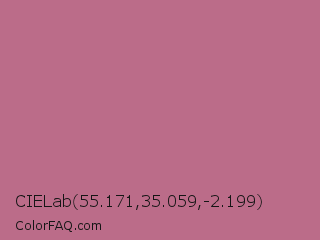 CIELab 55.171,35.059,-2.199 Color is a normal rose color and the nearest color is Turkish Rose #b57281. Hex code #bb6c89 and RGB value is rgb(187,108,137). In RGB color space, this color is composed of 73% red, 42% green, 54% blue, In CMYK color space, this color is composed of 0% cyan, 42% magenta, 27% yellow , 27% black , In HSL color space, this color has a hue angle of 338° , 37% saturation and 58% lightness.