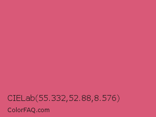 CIELab 55.332,52.88,8.576 Color is a normal red color and the nearest color is Cranberry #db5079. Hex code #d95978 and RGB value is rgb(217,89,120). In RGB color space, this color is composed of 85% red, 35% green, 47% blue, In CMYK color space, this color is composed of 0% cyan, 59% magenta, 45% yellow , 15% black , In HSL color space, this color has a hue angle of 345° , 63% saturation and 60% lightness.