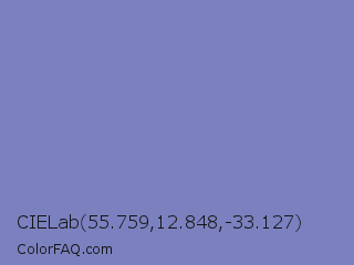 CIELab 55.759,12.848,-33.127 Color is a light blue color and the nearest color is Wild Blue Yonder #7a89b8. Hex code #7b81bf and RGB value is rgb(123,129,191). In RGB color space, this color is composed of 48% red, 51% green, 75% blue, In CMYK color space, this color is composed of 36% cyan, 32% magenta, 0% yellow , 25% black , In HSL color space, this color has a hue angle of 235° , 35% saturation and 62% lightness.