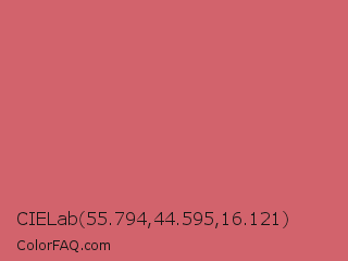 CIELab 55.794,44.595,16.121 Color is a light red color and the nearest color is Fuzzy Wuzzy #cc6666. Hex code #d2636c and RGB value is rgb(210,99,108). In RGB color space, this color is composed of 82% red, 39% green, 42% blue, In CMYK color space, this color is composed of 0% cyan, 53% magenta, 49% yellow , 18% black , In HSL color space, this color has a hue angle of 355° , 55% saturation and 61% lightness.