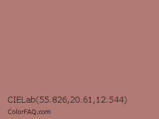 CIELab 55.826,20.61,12.544 Color is a normal red color and the nearest color is Copper Penny #ad6f69. Hex code #af7871 and RGB value is rgb(175,120,113). In RGB color space, this color is composed of 69% red, 47% green, 44% blue, In CMYK color space, this color is composed of 0% cyan, 31% magenta, 35% yellow , 31% black , In HSL color space, this color has a hue angle of 7° , 28% saturation and 56% lightness.