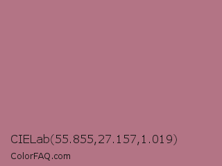 CIELab 55.855,27.157,1.019 Color is a normal rose color and the nearest color is Turkish Rose #b57281. Hex code #b37485 and RGB value is rgb(179,116,133). In RGB color space, this color is composed of 70% red, 45% green, 52% blue, In CMYK color space, this color is composed of 0% cyan, 35% magenta, 26% yellow , 30% black , In HSL color space, this color has a hue angle of 344° , 29% saturation and 58% lightness.