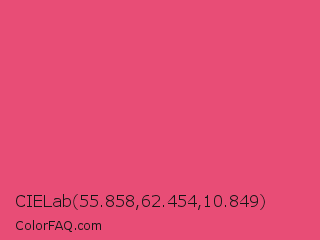 CIELab 55.858,62.454,10.849 Color is a light rose color and the nearest color is Dark Pink #e75480. Hex code #e84d76 and RGB value is rgb(232,77,118). In RGB color space, this color is composed of 91% red, 30% green, 46% blue, In CMYK color space, this color is composed of 0% cyan, 67% magenta, 49% yellow , 9% black , In HSL color space, this color has a hue angle of 344° , 77% saturation and 61% lightness.