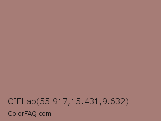 CIELab 55.917,15.431,9.632 Color is a normal red color and the nearest color is Burnished Brown #a17a74. Hex code #a67c76 and RGB value is rgb(166,124,118). In RGB color space, this color is composed of 65% red, 49% green, 46% blue, In CMYK color space, this color is composed of 0% cyan, 25% magenta, 29% yellow , 35% black , In HSL color space, this color has a hue angle of 7° , 21% saturation and 56% lightness.