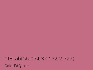 CIELab 56.054,37.132,2.727 Color is a normal rose color and the nearest color is Turkish Rose #b57281. Hex code #c36c83 and RGB value is rgb(195,108,131). In RGB color space, this color is composed of 76% red, 42% green, 51% blue, In CMYK color space, this color is composed of 0% cyan, 45% magenta, 33% yellow , 24% black , In HSL color space, this color has a hue angle of 344° , 42% saturation and 59% lightness.