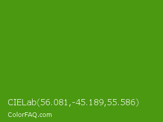 CIELab 56.081,-45.189,55.586 Color is a normal green color and the nearest color is Vida Loca #549019. Hex code #4b9811 and RGB value is rgb(75,152,17). In RGB color space, this color is composed of 29% red, 60% green, 7% blue, In CMYK color space, this color is composed of 51% cyan, 0% magenta, 89% yellow , 40% black , In HSL color space, this color has a hue angle of 94° , 80% saturation and 33% lightness.