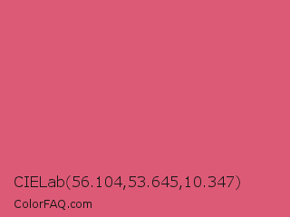 CIELab 56.104,53.645,10.347 Color is a light red color and the nearest color is Cranberry #db5079. Hex code #dd5a77 and RGB value is rgb(221,90,119). In RGB color space, this color is composed of 87% red, 35% green, 47% blue, In CMYK color space, this color is composed of 0% cyan, 59% magenta, 46% yellow , 13% black , In HSL color space, this color has a hue angle of 347° , 66% saturation and 61% lightness.