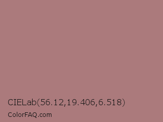 CIELab 56.12,19.406,6.518 Color is a normal red color and the nearest color is Pharlap #a3807b. Hex code #ab7a7c and RGB value is rgb(171,122,124). In RGB color space, this color is composed of 67% red, 48% green, 49% blue, In CMYK color space, this color is composed of 0% cyan, 29% magenta, 27% yellow , 33% black , In HSL color space, this color has a hue angle of 358° , 23% saturation and 57% lightness.
