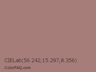 CIELab 56.242,15.297,8.356 Color is a normal red color and the nearest color is Pharlap #a3807b. Hex code #a67d79 and RGB value is rgb(166,125,121). In RGB color space, this color is composed of 65% red, 49% green, 47% blue, In CMYK color space, this color is composed of 0% cyan, 25% magenta, 27% yellow , 35% black , In HSL color space, this color has a hue angle of 5° , 20% saturation and 56% lightness.