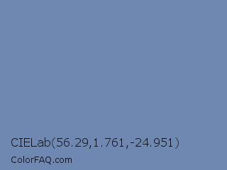 CIELab 56.29,1.761,-24.951 Color is a normal blue color and the nearest color is Ship Cove #788bba. Hex code #6f88b2 and RGB value is rgb(111,136,178). In RGB color space, this color is composed of 44% red, 53% green, 70% blue, In CMYK color space, this color is composed of 38% cyan, 24% magenta, 0% yellow , 30% black , In HSL color space, this color has a hue angle of 218° , 30% saturation and 57% lightness.