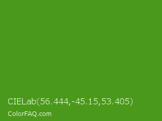 CIELab 56.444,-45.15,53.405 Color is a normal green color and the nearest color is Vida Loca #549019. Hex code #4b991b and RGB value is rgb(75,153,27). In RGB color space, this color is composed of 29% red, 60% green, 11% blue, In CMYK color space, this color is composed of 51% cyan, 0% magenta, 82% yellow , 40% black , In HSL color space, this color has a hue angle of 97° , 70% saturation and 35% lightness.