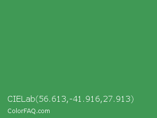CIELab 56.613,-41.916,27.913 Color is a normal green color and the nearest color is Fruit Salad #4f9d5d. Hex code #409955 and RGB value is rgb(64,153,85). In RGB color space, this color is composed of 25% red, 60% green, 33% blue, In CMYK color space, this color is composed of 58% cyan, 0% magenta, 44% yellow , 40% black , In HSL color space, this color has a hue angle of 134° , 41% saturation and 43% lightness.
