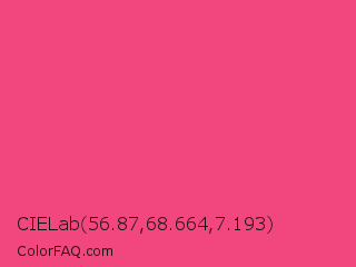CIELab 56.87,68.664,7.193 Color is a light rose color and the nearest color is Violet Red #f7468a. Hex code #f2467f and RGB value is rgb(242,70,127). In RGB color space, this color is composed of 95% red, 27% green, 50% blue, In CMYK color space, this color is composed of 0% cyan, 71% magenta, 48% yellow , 5% black , In HSL color space, this color has a hue angle of 340° , 87% saturation and 61% lightness.
