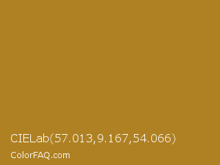 CIELab 57.013,9.167,54.066 Color is a normal orange color and the nearest color is University Of California Gold #b78727. Hex code #af8123 and RGB value is rgb(175,129,35). In RGB color space, this color is composed of 69% red, 51% green, 14% blue, In CMYK color space, this color is composed of 0% cyan, 26% magenta, 80% yellow , 31% black , In HSL color space, this color has a hue angle of 40° , 67% saturation and 41% lightness.
