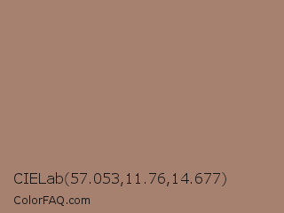CIELab 57.053,11.76,14.677 Color is a normal orange color and the nearest color is Beaver #9f8170. Hex code #a68170 and RGB value is rgb(166,129,112). In RGB color space, this color is composed of 65% red, 51% green, 44% blue, In CMYK color space, this color is composed of 0% cyan, 22% magenta, 33% yellow , 35% black , In HSL color space, this color has a hue angle of 19° , 23% saturation and 55% lightness.