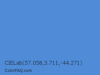 CIELab 57.058,3.711,-44.271 Color is a normal blue color and the nearest color is Havelock Blue #5590d9. Hex code #4f8bd6 and RGB value is rgb(79,139,214). In RGB color space, this color is composed of 31% red, 55% green, 84% blue, In CMYK color space, this color is composed of 63% cyan, 35% magenta, 0% yellow , 16% black , In HSL color space, this color has a hue angle of 213° , 62% saturation and 57% lightness.
