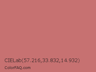 CIELab 57.216,33.832,14.932 Color is a light red color and the nearest color is Contessa #c6726b. Hex code #c77171 and RGB value is rgb(199,113,113). In RGB color space, this color is composed of 78% red, 44% green, 44% blue, In CMYK color space, this color is composed of 0% cyan, 43% magenta, 43% yellow , 22% black , In HSL color space, this color has a hue angle of 0° , 43% saturation and 61% lightness.