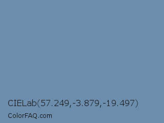 CIELab 57.249,-3.879,-19.497 Color is a normal blue color and the nearest color is Bermuda Gray #6b8ba2. Hex code #6c8dab and RGB value is rgb(108,141,171). In RGB color space, this color is composed of 42% red, 55% green, 67% blue, In CMYK color space, this color is composed of 37% cyan, 18% magenta, 0% yellow , 33% black , In HSL color space, this color has a hue angle of 209° , 27% saturation and 55% lightness.
