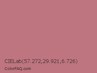 CIELab 57.272,29.921,6.726 Color is a normal red color and the nearest color is Turkish Rose #b57281. Hex code #be757f and RGB value is rgb(190,117,127). In RGB color space, this color is composed of 75% red, 46% green, 50% blue, In CMYK color space, this color is composed of 0% cyan, 38% magenta, 33% yellow , 25% black , In HSL color space, this color has a hue angle of 352° , 36% saturation and 60% lightness.