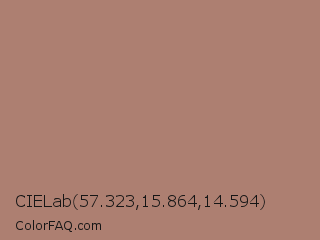 CIELab 57.323,15.864,14.594 Color is a normal red color and the nearest color is Burnished Brown #a17a74. Hex code #ad7f71 and RGB value is rgb(173,127,113). In RGB color space, this color is composed of 68% red, 50% green, 44% blue, In CMYK color space, this color is composed of 0% cyan, 27% magenta, 35% yellow , 32% black , In HSL color space, this color has a hue angle of 14° , 27% saturation and 56% lightness.
