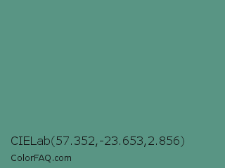 CIELab 57.352,-23.653,2.856 Color is a normal green color and the nearest color is Steel Teal #5f8a8b. Hex code #599584 and RGB value is rgb(89,149,132). In RGB color space, this color is composed of 35% red, 58% green, 52% blue, In CMYK color space, this color is composed of 40% cyan, 0% magenta, 11% yellow , 42% black , In HSL color space, this color has a hue angle of 163° , 25% saturation and 47% lightness.