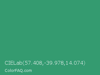 CIELab 57.408,-39.978,14.074 Color is a normal green color and the nearest color is Illuminating Emerald #319177. Hex code #349b70 and RGB value is rgb(52,155,112). In RGB color space, this color is composed of 20% red, 61% green, 44% blue, In CMYK color space, this color is composed of 66% cyan, 0% magenta, 28% yellow , 39% black , In HSL color space, this color has a hue angle of 155° , 50% saturation and 41% lightness.