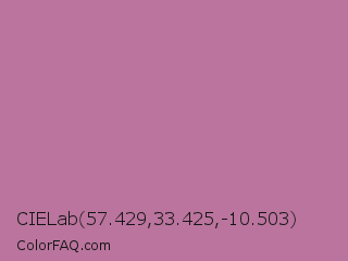 CIELab 57.429,33.425,-10.503 Color is a normal magenta color and the nearest color is Pearly Purple #b768a2. Hex code #ba749d and RGB value is rgb(186,116,157). In RGB color space, this color is composed of 73% red, 45% green, 62% blue, In CMYK color space, this color is composed of 0% cyan, 38% magenta, 16% yellow , 27% black , In HSL color space, this color has a hue angle of 325° , 34% saturation and 59% lightness.