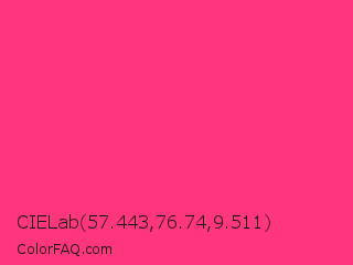 CIELab 57.443,76.74,9.511 Color is a light rose color and the nearest color is Sasquatch Socks #ff4681. Hex code #ff367d and RGB value is rgb(255,54,125). In RGB color space, this color is composed of 100% red, 21% green, 49% blue, In CMYK color space, this color is composed of 0% cyan, 79% magenta, 51% yellow , 0% black , In HSL color space, this color has a hue angle of 339° , 100% saturation and 61% lightness.