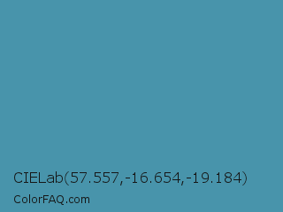 CIELab 57.557,-16.654,-19.184 Color is a normal blue color and the nearest color is Boston Blue #3b91b4. Hex code #4894ab and RGB value is rgb(72,148,171). In RGB color space, this color is composed of 28% red, 58% green, 67% blue, In CMYK color space, this color is composed of 58% cyan, 13% magenta, 0% yellow , 33% black , In HSL color space, this color has a hue angle of 194° , 41% saturation and 48% lightness.