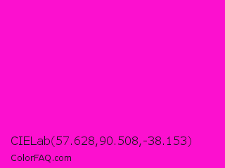 CIELab 57.628,90.508,-38.153 Color is a normal magenta color and the nearest color is Hot Magenta #ff1dce. Hex code #fc10cf and RGB value is rgb(252,16,207). In RGB color space, this color is composed of 99% red, 6% green, 81% blue, In CMYK color space, this color is composed of 0% cyan, 94% magenta, 18% yellow , 1% black , In HSL color space, this color has a hue angle of 311° , 98% saturation and 53% lightness.
