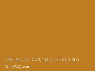 CIELab 57.774,18.007,56.136 Color is a normal orange color and the nearest color is University Of California Gold #b78727. Hex code #be7d21 and RGB value is rgb(190,125,33). In RGB color space, this color is composed of 75% red, 49% green, 13% blue, In CMYK color space, this color is composed of 0% cyan, 34% magenta, 83% yellow , 25% black , In HSL color space, this color has a hue angle of 35° , 70% saturation and 44% lightness.