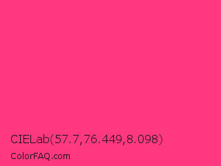CIELab 57.7,76.449,8.098 Color is a light rose color and the nearest color is Sasquatch Socks #ff4681. Hex code #ff3880 and RGB value is rgb(255,56,128). In RGB color space, this color is composed of 100% red, 22% green, 50% blue, In CMYK color space, this color is composed of 0% cyan, 78% magenta, 50% yellow , 0% black , In HSL color space, this color has a hue angle of 338° , 100% saturation and 61% lightness.
