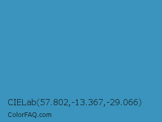 CIELab 57.802,-13.367,-29.066 Color is a normal blue color and the nearest color is Boston Blue #3b91b4. Hex code #3a94bd and RGB value is rgb(58,148,189). In RGB color space, this color is composed of 23% red, 58% green, 74% blue, In CMYK color space, this color is composed of 69% cyan, 22% magenta, 0% yellow , 26% black , In HSL color space, this color has a hue angle of 199° , 53% saturation and 48% lightness.