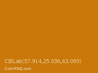 CIELab 57.914,25.036,63.093 Color is a normal orange color and the nearest color is Meteor #d07d12. Hex code #c97809 and RGB value is rgb(201,120,9). In RGB color space, this color is composed of 79% red, 47% green, 4% blue, In CMYK color space, this color is composed of 0% cyan, 40% magenta, 96% yellow , 21% black , In HSL color space, this color has a hue angle of 35° , 91% saturation and 41% lightness.