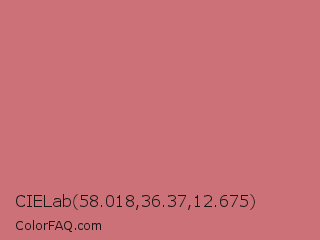 CIELab 58.018,36.37,12.675 Color is a light red color and the nearest color is Contessa #c6726b. Hex code #cc7177 and RGB value is rgb(204,113,119). In RGB color space, this color is composed of 80% red, 44% green, 47% blue, In CMYK color space, this color is composed of 0% cyan, 45% magenta, 42% yellow , 20% black , In HSL color space, this color has a hue angle of 356° , 47% saturation and 62% lightness.