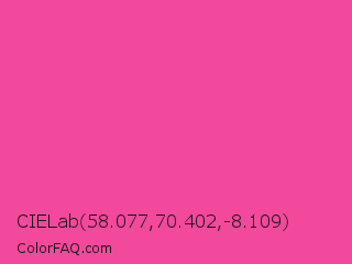 CIELab 58.077,70.402,-8.109 Color is a light rose color and the nearest color is Rose Bonbon #f9429e. Hex code #f2499c and RGB value is rgb(242,73,156). In RGB color space, this color is composed of 95% red, 29% green, 61% blue, In CMYK color space, this color is composed of 0% cyan, 70% magenta, 36% yellow , 5% black , In HSL color space, this color has a hue angle of 331° , 87% saturation and 62% lightness.
