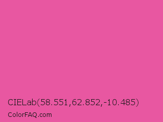 CIELab 58.551,62.852,-10.485 Color is a light rose color and the nearest color is Raspberry Pink #e25098. Hex code #e857a1 and RGB value is rgb(232,87,161). In RGB color space, this color is composed of 91% red, 34% green, 63% blue, In CMYK color space, this color is composed of 0% cyan, 63% magenta, 31% yellow , 9% black , In HSL color space, this color has a hue angle of 329° , 76% saturation and 63% lightness.