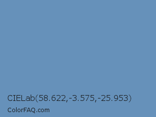 CIELab 58.622,-3.575,-25.953 Color is a normal blue color and the nearest color is Silver Lake Blue #5d89ba. Hex code #6691ba and RGB value is rgb(102,145,186). In RGB color space, this color is composed of 40% red, 57% green, 73% blue, In CMYK color space, this color is composed of 45% cyan, 22% magenta, 0% yellow , 27% black , In HSL color space, this color has a hue angle of 209° , 38% saturation and 56% lightness.