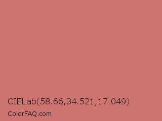 CIELab 58.66,34.521,17.049 Color is a light red color and the nearest color is Contessa #c6726b. Hex code #cd7471 and RGB value is rgb(205,116,113). In RGB color space, this color is composed of 80% red, 45% green, 44% blue, In CMYK color space, this color is composed of 0% cyan, 43% magenta, 45% yellow , 20% black , In HSL color space, this color has a hue angle of 2° , 48% saturation and 62% lightness.